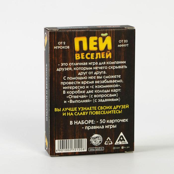 Купить игра для компании "пей веселей" 50 карт от 180 руб. с доставкой до пункта выдачи в Унече. Интернет магазин ДекаМаркет. Оплата при получении.